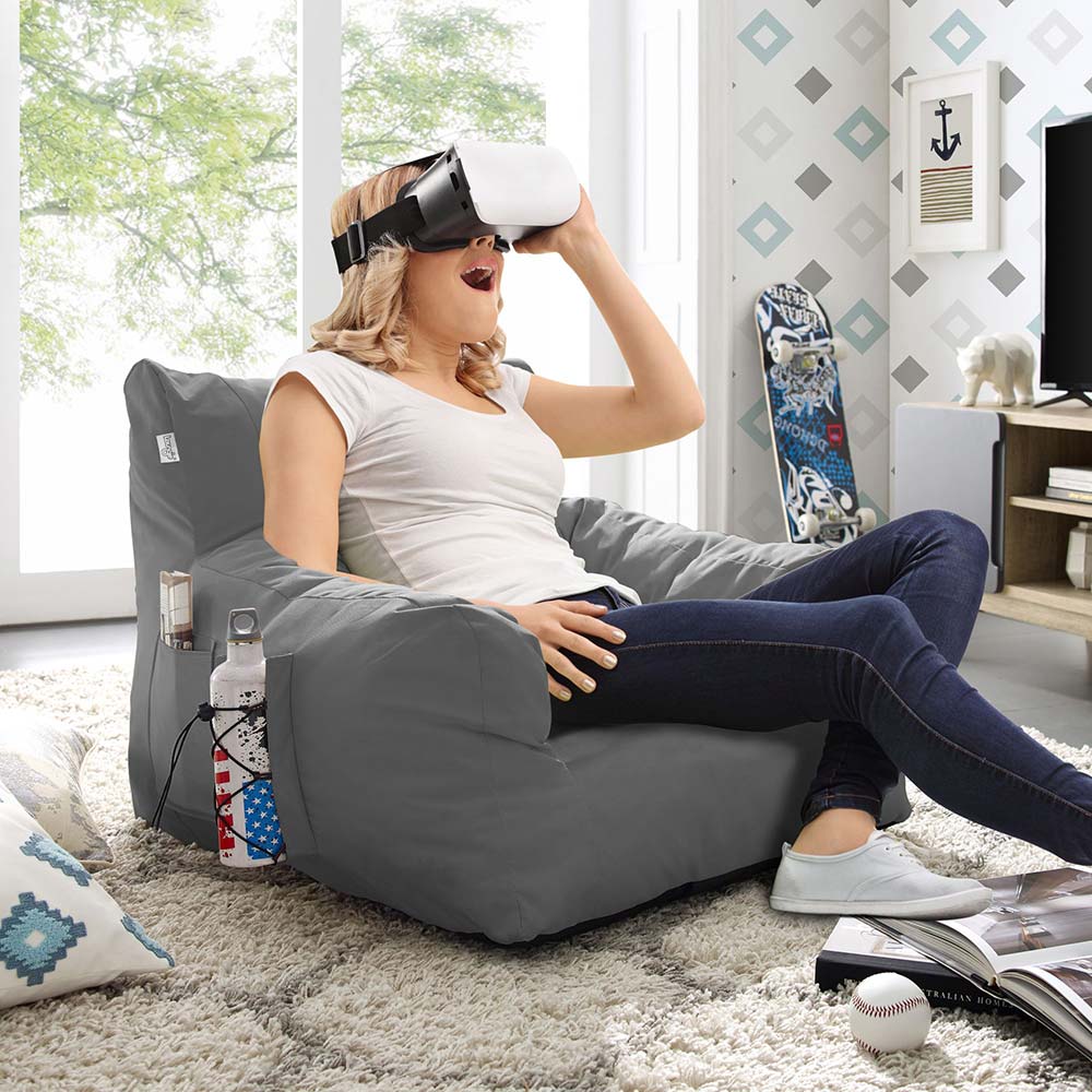 Made with super soft materials for extra relaxation and assorted colors so you can find the one just right for your taste. The Loungie brand comes in all different sizes, so they can fit your playroom or man cave. Best for babe caves and she-sheds that are out there too!
